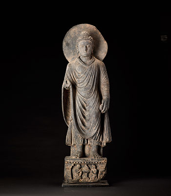公元2/3世纪 犍陀罗地区灰片岩雕佛陀立身站像