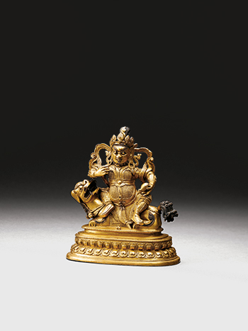 A GILT-BRONZE FIGURE OF VAISHRAVANA <br/>QING DYNASTY