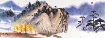 武陵,位於台灣中部,屬雪山山脈圍繞的高海拔山區,群山環繞、谿谷棋布,四季分明,秋冬時節楓紅迷人。武陵地區景色優雅,宛如古人陶淵明的桃花源勝地,經常吸引席德進與友人到此駐足,完成此幅難得一見的巨幅彩畫墨—《武陵》。