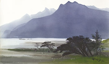 此幅作品創作於1980年,為藝術家生命的最後第二年所作。席德進晚期作品最吸引人的地方,或許就是那一抹淡淡的幽藍,肅穆聖潔的藍,緊緊扣住了觀者的心緒;它靜謚地流淌出一絲絲的憂悒,讓人不得不停佇腳步,凝神注目。