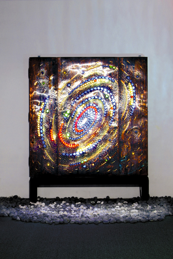 我們來自億萬光年的彼方,如果沒有光的聯繫,那是多麼無依無恃呀?對光的渴慕,幻想光海舞動渦漩,這就是我創作「蒼穹光舞」的源頭。