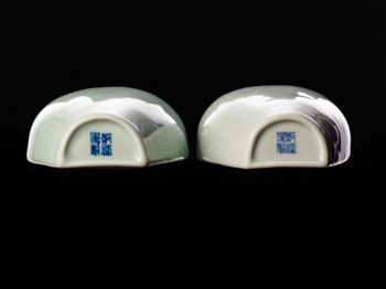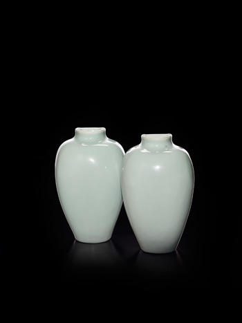 清乾隆 豆青釉壁瓶一對
