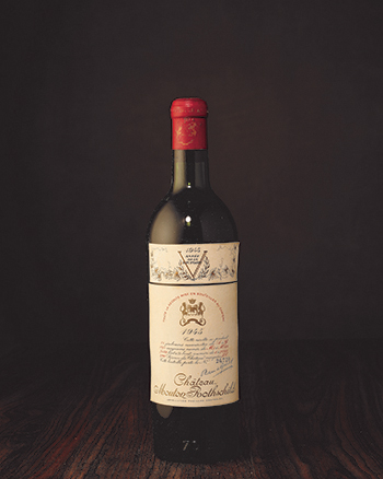 1945年的Château Mouton-Rothschild無疑代表著傳奇的滋味,Wine Spectator與Robert Parker雙雙給予100分的評價。卓越繽紛的異國香料,極熟的黑水果,咖啡,菸草,摩卡咖啡,亞洲香料等,單寧柔軟,口感豐厚綿密且層層環繞舌尖,久久不散;而1945年除了是波爾多葡萄酒於二十世紀的偉大年份之一,更是二次世界大戰的尾聲。受到同盟國(WWII Allies)勝利的觸動,Baron Philippede Rothschild決定用該年度的酒標來紀念重獲和平的喜悅,他委託給後來逐漸在戲劇界展露頭角的Philippe Jullian,以英國首相邱吉爾在二戰期間鼓舞自由力量的V字手勢-V for Victory為創作核心,打造了這個具有重要歷史意義的藝術酒標,有著世紀不朽的珍藏價值。