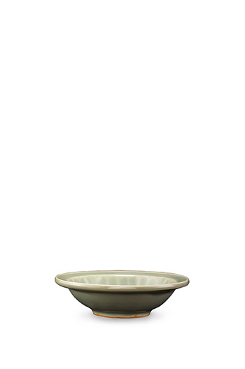 龍泉窯為歷史上重要的青瓷窯口,尤以宋代時期燒製的最為著名,質量最優。燒製的器物也豐富多彩,釉色也分為粉青、梅子青、冬青等釉色。此洗敞口,淺平腹,內壁呈現瓜棱型,通體施青釉,釉質肥潤若瑩玉,其胎骨凸出處清淡,凹處微微釉深,明暗變化顯得更加優雅,外壁圈足修削工整,足底露胎呈現紅褐色,為宋代時期龍泉窯的典型特徵。