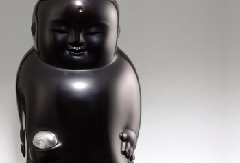 李真特意以不合乎正常比例的方式製作此人物雕塑,呈現腳部渾厚、表情靦腆的樸拙人物。他似乎掉入一個空無、沒有思考的狀態中;其上方之物像是小孩,而從背後觀看其體態又像動物,有一張嬰兒般天真的臉孔;右邊神祕的口袋裝有一個像乳房、又像溜溜球的小物─觀者可自行想像!