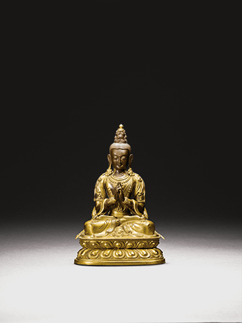 是件如來坐像通體以捶鍱技法打製,胎體尚稱厚實,是藏傳佛教較為珍罕的造像。