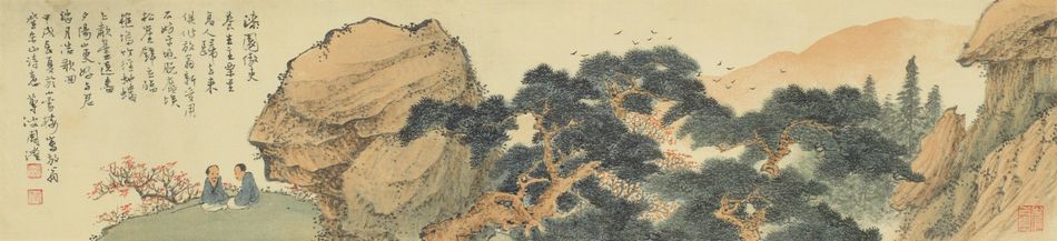 款識:甲戊長夏於小雪樓寫放翁《登東山》詩意, 蓴波周澄。