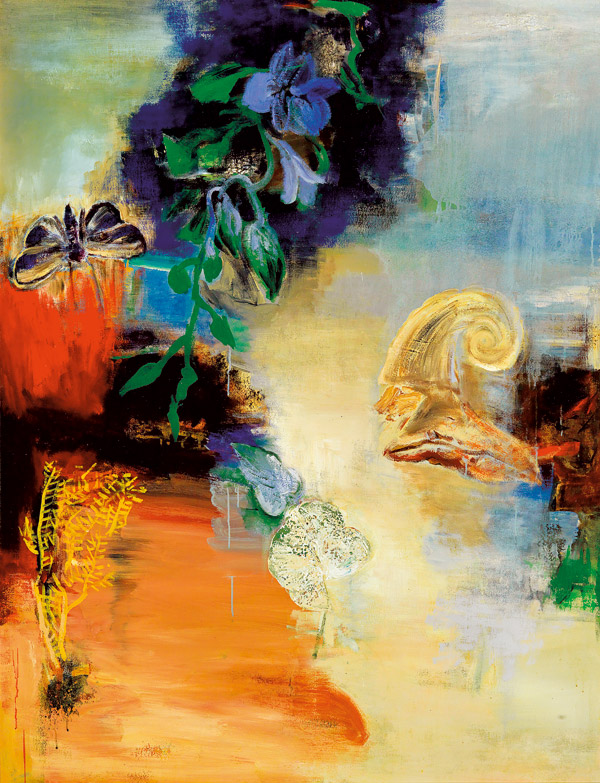 簽名畫背:Chihung Yang Dialog of Fire & Water 1988 78 x 60 inches
