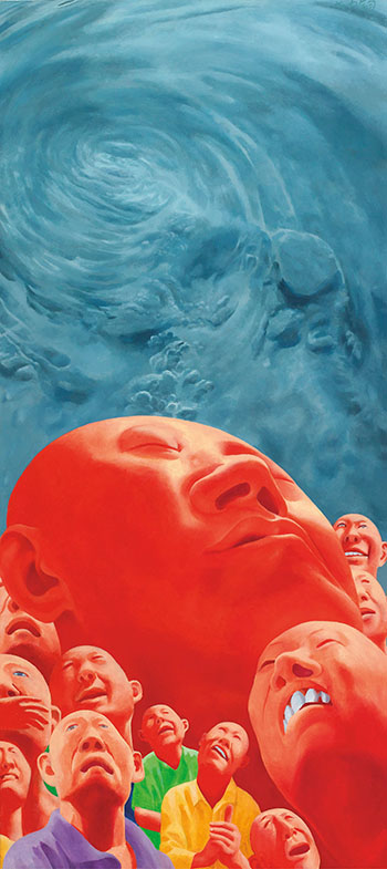 方力鈞筆下的光頭青年不乏攻擊性,並時常以迷失或是健忘的神態出現在畫中。這些人物總以多重表徵呈現,彷彿是在告知世人,壓抑的大眾已被焦慮與不安折磨得失去了人性,可隨意操控。如此看來,畫家本人正是在一個毫無意義可言的冷漠社會體系中,探究個人的苦境。