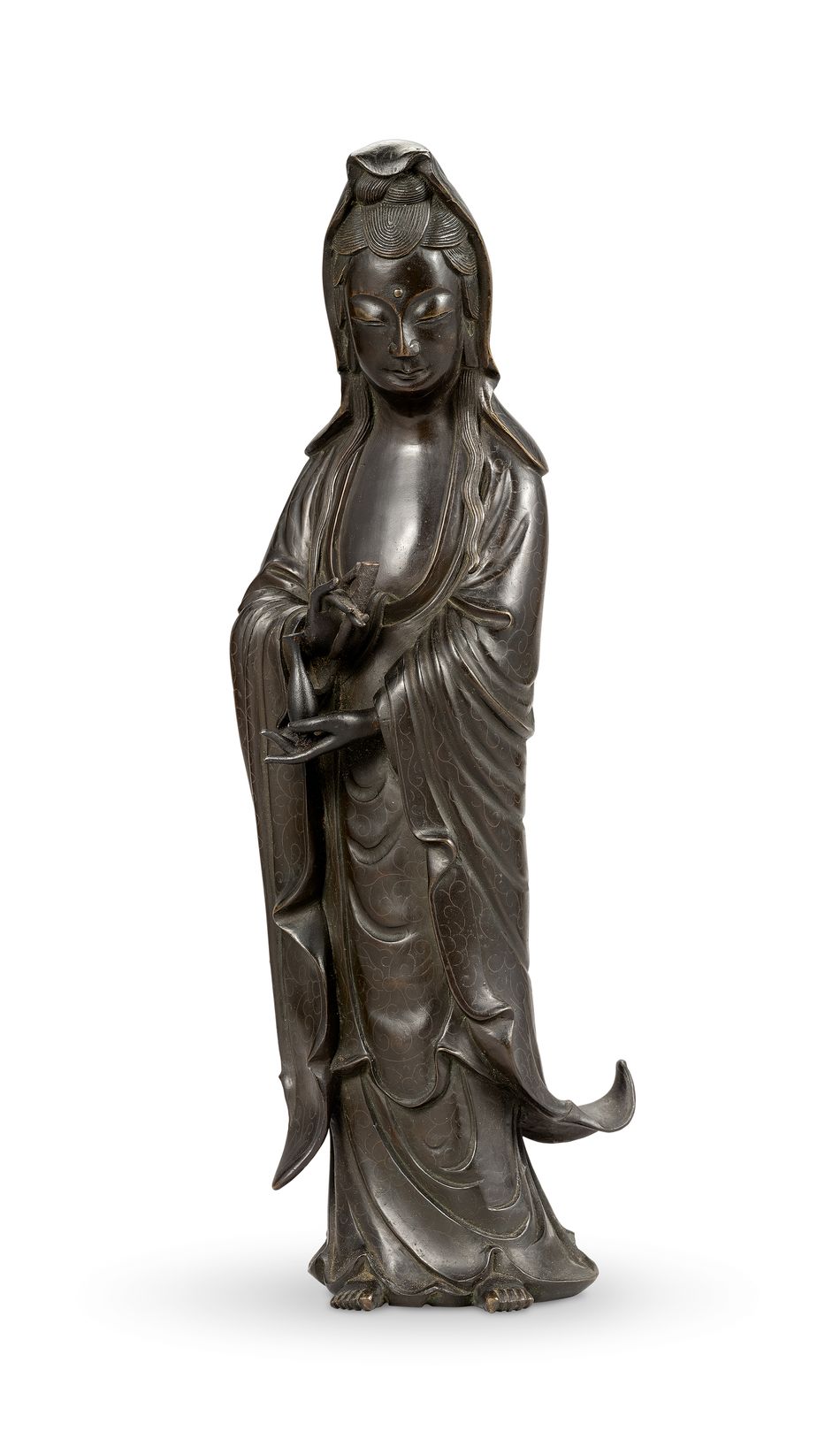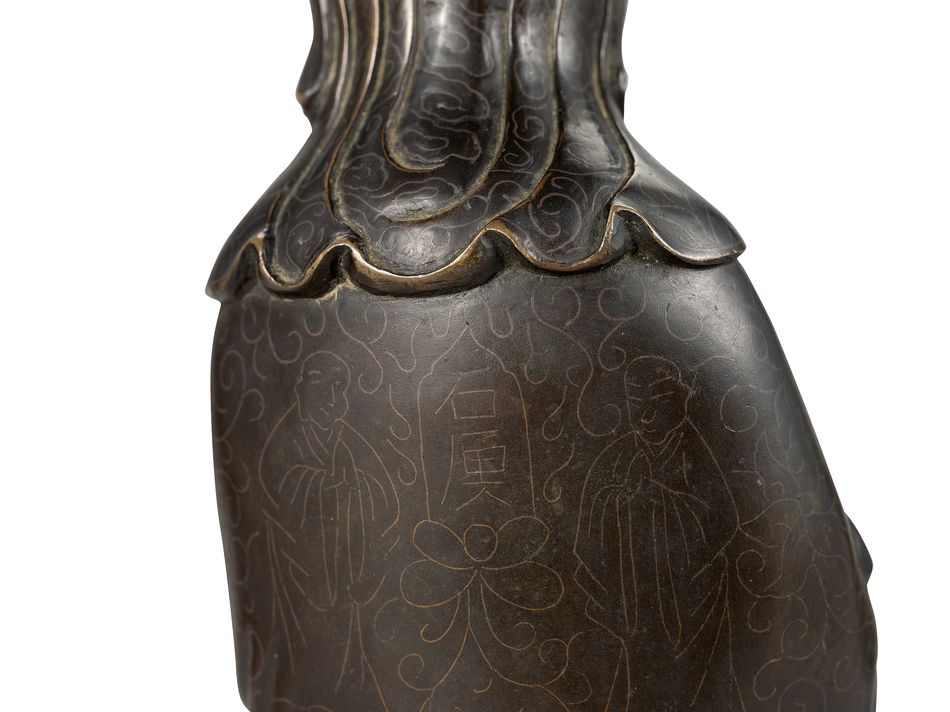 清 銅嵌銀絲觀音菩薩像《石叟》款