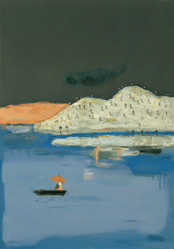 簽名畫背:紅傘 161 x 112 cm 布面油畫 2005 陳淑霞