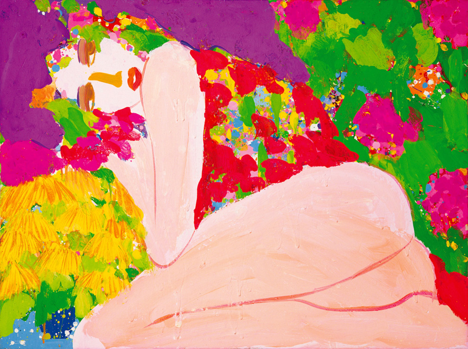 此幅《春情》創作於1986年,透明與鮮活的色彩並置,色與色之間的對比呼應極融洽協調,熱情洋溢的模特兒肉體所散發的熱力如陽光下盛開的花朵,蘊含著萬般柔情,記載著畫家生命中一段難忘的邂逅。