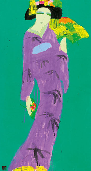 丁雄泉原為抽象畫家,1970年代起專注於人體的題材,當時他生活在紐約十多年,結識美國普普藝術之父安迪.沃荷、湯姆.衛塞爾曼以及羅伊.李奇登斯坦等好友,丁雄泉和他們都創造了真實反映自我人生的標誌性主題:一為女體,另一則為花卉。對丁雄泉而言,花與女人是無法分割的,終其一生,都在探索女性媚惑之美,他擅長描寫女性柔和、吸引人的一面,畫家筆下的女人,要有花,要有鳥,要有貓,要有鮮活美麗的事物。
