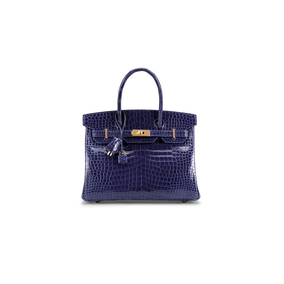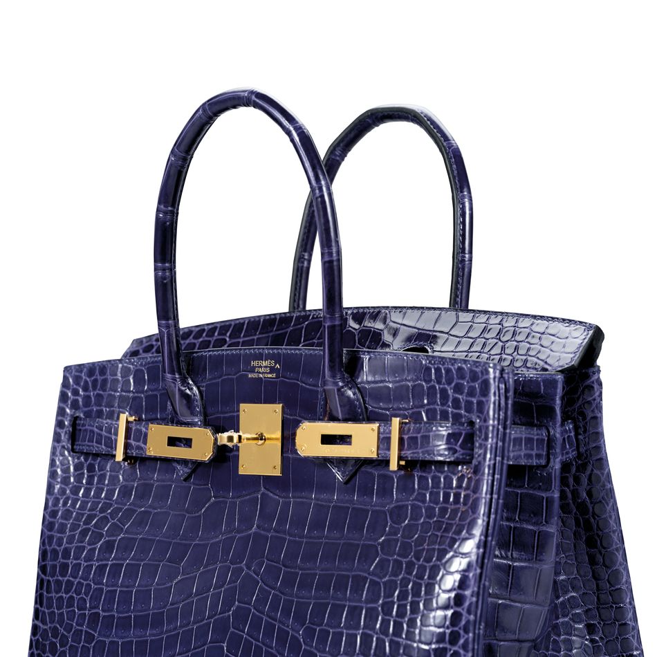 亮面閃電藍色POROSUS灣鱷魚皮30公分柏金包附金色金屬配件