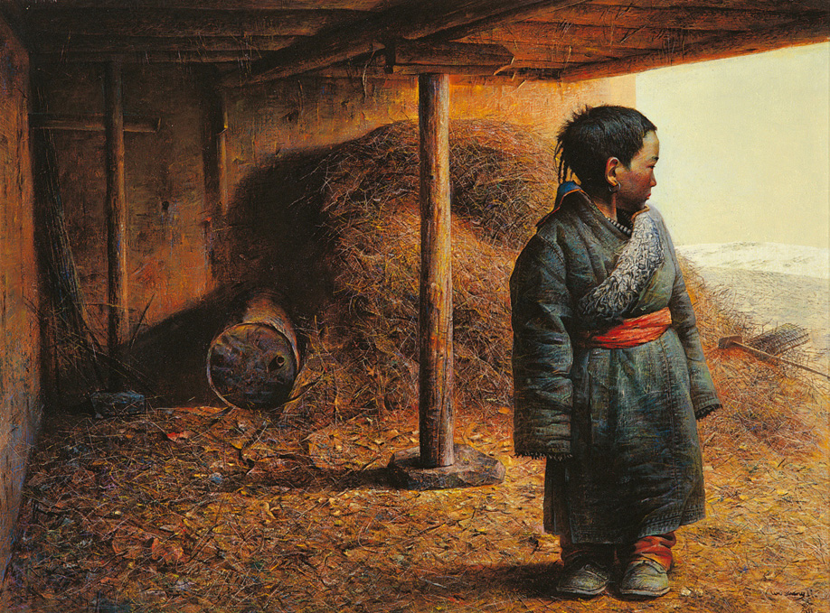 The renowned contemporary Chinese oil painter Luo Zhongli had achieved prominence in China's painting community by the 1980's. His masterpiece "Father" used sophisticated realist painting techniques and novel artistic concepts to inspire the art world's strong interest in Realism again. This also hinted at the end of the single themed painting styles that had once graced Chinese art. In Luo Zhongli's realist oil paintings, we see another world in front of us that he had discovered through his unique artistic perspective. This was a world made up of special moments and touching instants from the distant countryside. "Tibetan Child" provides us with this type of mutually-supporting art aesthetic that's well worth our time to carefully sample.