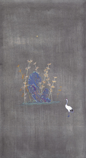 签名右下:郑在东 04(放鹤、石、竹林、鹤)