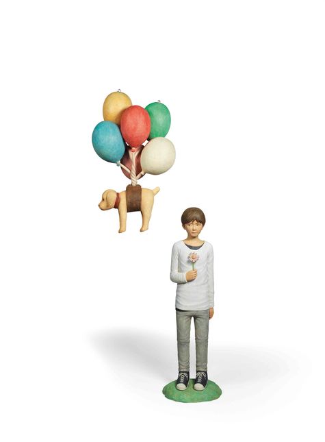 (犬) 24(長) x 38(寬) x 64(高) cm; (少年) 28(長) x 23(寬) x 85(高) cm