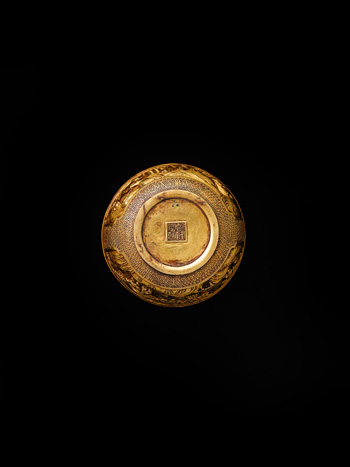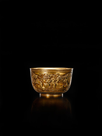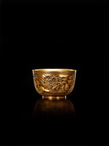 清中期 銅鎏金漁樵耕讀宮碗