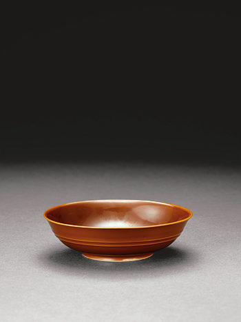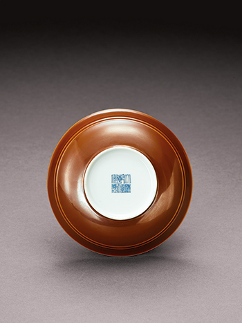 是件單色釉盤,胎質細膩,釉面勻淨,是乾隆朝紫金釉器的箇中精品。