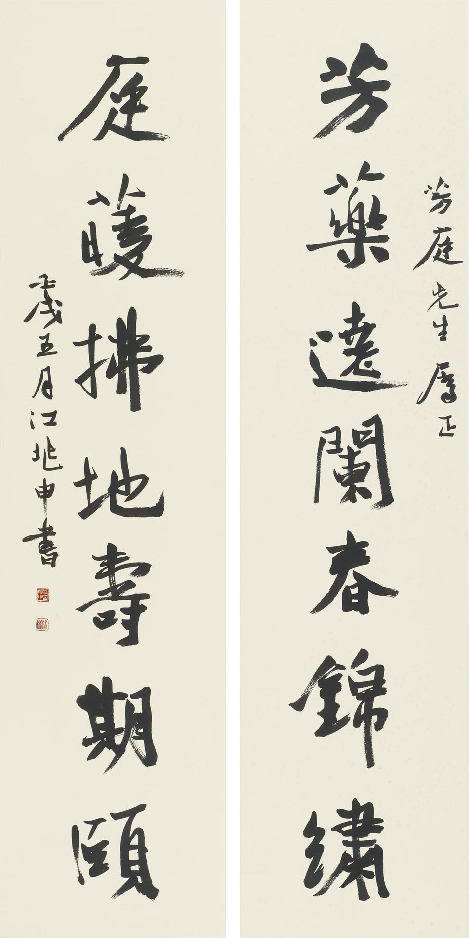 款識:芳庭先生居正,壬戌五月江兆申書。