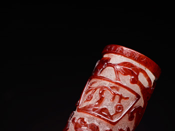 類似器: 乾隆時期的白套紅玻璃立件可參見:張榮主編,《光凝 秋水:清宮造辦處玻璃器》,北京:紫禁城出版社, 2005年,頁202-203。