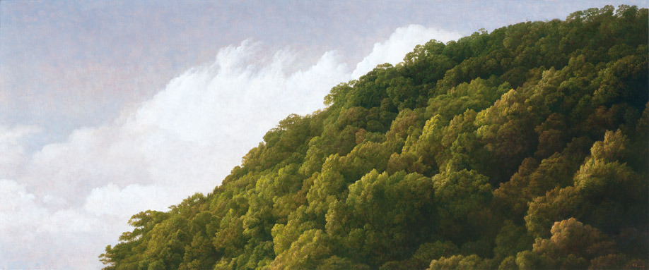 葉子奇的繪畫在濃郁的古典氛圍中一直有著強烈的當代感構圖。他的繪畫訓練與精神素養有著跨越中西文化的深度與廣度。《五月的紗帽山》,藝術家強調雲與山的對話,除了運用至簡藝術的元素,也有南宋馬遠和夏圭「一角」與「半邊」的構圖變奏,藉著前後光影明暗相互映襯的處理,將遠近氛圍的對比與空間的變化賦予無限的開展,色調與色彩的精密變化,在畫中透露出深沉的靜寂與溫柔。葉子奇的風景傳遞出一種深刻的生命氣息,蘊涵了形而上學的神秘主義。他以敏感的心思、謙卑的態度,將自己的人生體驗及行旅紀錄結合,引領觀者進入藝術家的精神領域,探索人與土地似曾相識的共同記憶。
