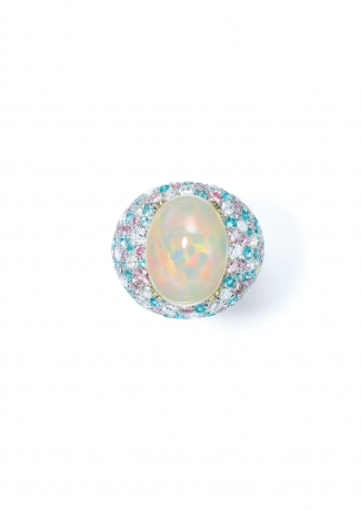 6.42克拉橢圓形蛋白石, 帕拉依巴電氣石, 粉紅鑽石與鑽石戒指, MICHAEL YOUSSOUFIAN