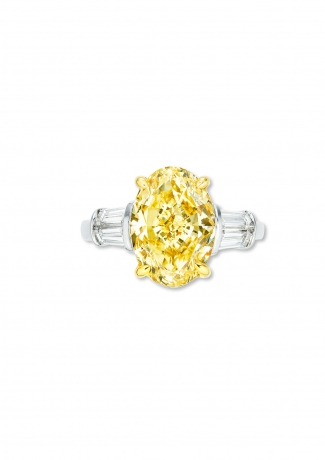 5.44克拉橢圓形濃彩黃鑽石與鑽石戒指, 附GIA證書