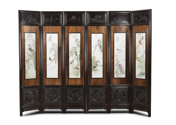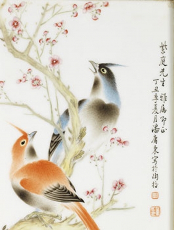 晚清 粉彩花鳥圖瓷屏風