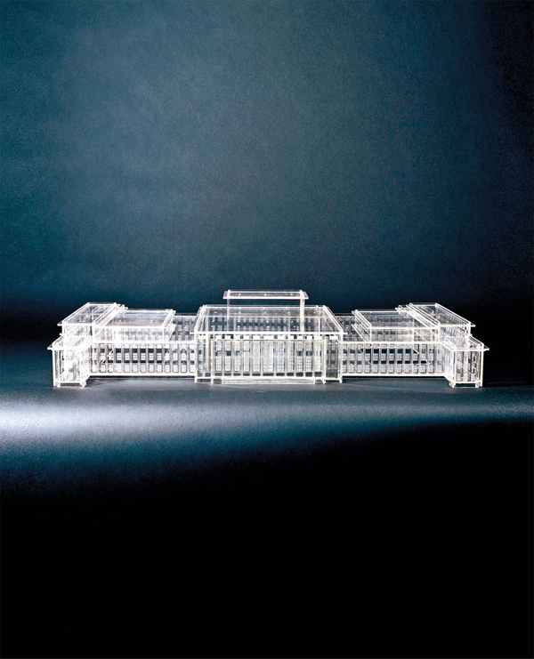 藝術家使用透明易碎的有機玻璃材質,製成了象徵北京政治中心的建築模型作品「人民大會堂」。而他一改建築原有的形象,在裡面融入了金魚、蟋蟀、花朵等充滿生命力的自然素材。或許,藝術家想用這種荒誕的變化來提及中國社會的現代化反思。