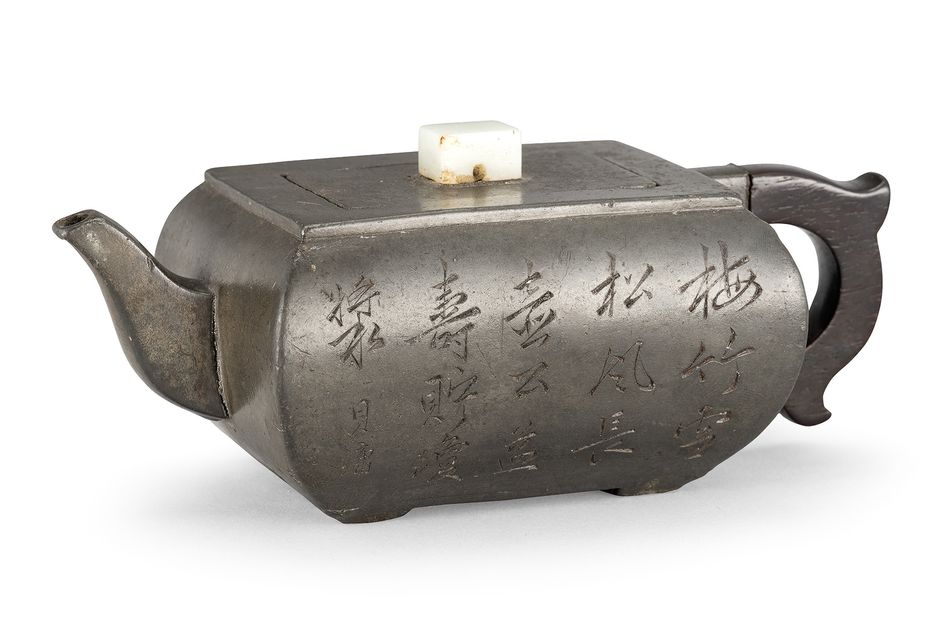 清 貝墉刻詩文三鑲錫壺《千墨庵制》款