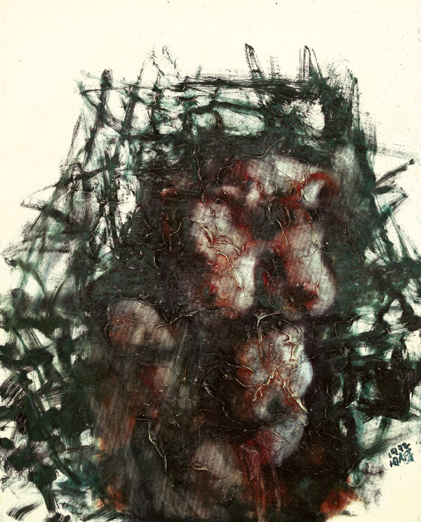 "Red Mountain Rock Series - Nude" was painted by the Zhou Chunya in 1992. Instead of portraying rocks as quiet, lifeless objects as they are traditionally displayed, the artist uses an adventurous method for their depiction by painting them with layers of deep reds. In this piece, the traditionally elegant and graceful mountain stone exudes signs of violence, even sensuality. This is a reflection of the artist's challenge to tradition, as well as the complexities of his search for the origin of nature from within him.