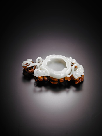 清 白玉纏枝牡丹紋水洗