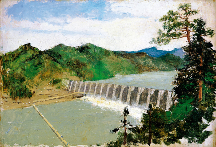 畫背:佛子嶺水庫 吳作人 一九五四