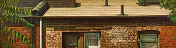 葉子奇的作品常常需要冗長的創作時間,並飽含著個人情感。如本件作品,藝術家自述:「老公寓的後院窗前長出了好幾株樗樹,在紐約四處可見它發旺的生機,初見時,想到母親愛吃的香椿。畫的時節是盛夏,夏日的光影在新與舊的磚牆上緩慢的移動和變化,畫作的進度也是緩慢的。那年秋天,父親辭世,樗葉飄零,細數磚頭光影的變化,成為一種療傷止痛的過程。期間有掙扎,有自制,也有緬懷。」