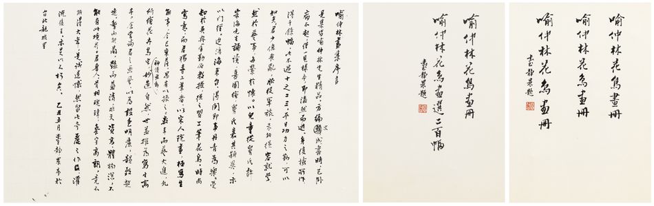 (左)喻仲林畫集序言。是集皆喻仲林先生精品,方編次成書,時已臥病不起,僅一見樣本,即溘然而逝。身後檢所作,得千餘幅,此不過十之二三,平日功力之勤,可以知矣。君少值喪亂,服役軍旅,未能從容就學。然於藝事,每縈於懷。以兒童從舅氏許宗海先生誦讀,喜圖繪。舅氏嘉其穎異,示以門徑。迨渡海來台,得閒即事丹青為樂。受知於吳興金勤伯教授,從之習工筆花鳥。時尚寫意,而君獨喜工筆者,以宋人院畫,極寫生能事,今以衰落,思有以振之。數年而藝大進,凡所繪花卉蟲鳥,神情飛動,妙造自然,世並推為寫生高手。余嘗論君之畫風,以為設色明麗,韻致超逸,繁而能減,艷而益清,非天資高、體物深,不能有此境界。君魯人,骨相瑰瑋,氣宇高朗,竟不能得大年,是誠遺憾,然留此奇麗之作,灌溉後生,亦足以不朽矣。