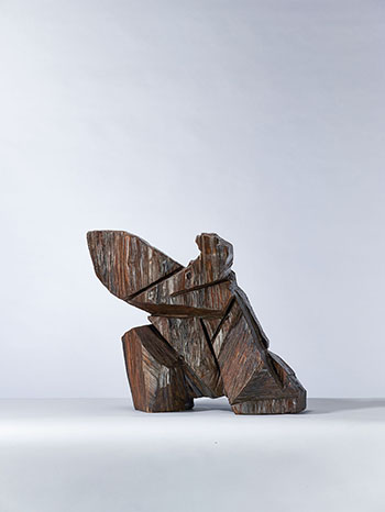 朱銘刀下的「單鞭下勢」,本身具有力度與造型的美感,在動靜之間,讓人感到綿綿不絕的形意流轉,因其式有起伏,不拘泥於外在形態的雕琢,只追求意識流轉的完整呈現,誠如太極拳宗師王宗岳所強調的「力由脊發,步隨身換。收即是放,斷而復連,往復須有折疊,進退須有轉換」,於單鞭下勢中可獲得最好的詮釋。