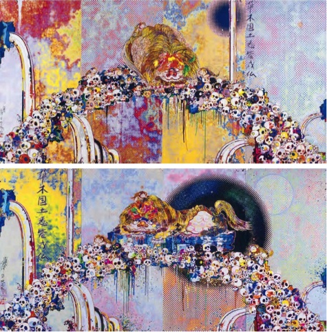 Of Chinese Lions, Peonies, Skulls, and Fountains; As The Interdimensional Waves Run Through Me, I Can Distinguish Between The Voices Of Angel And Devil! (a set of 2)