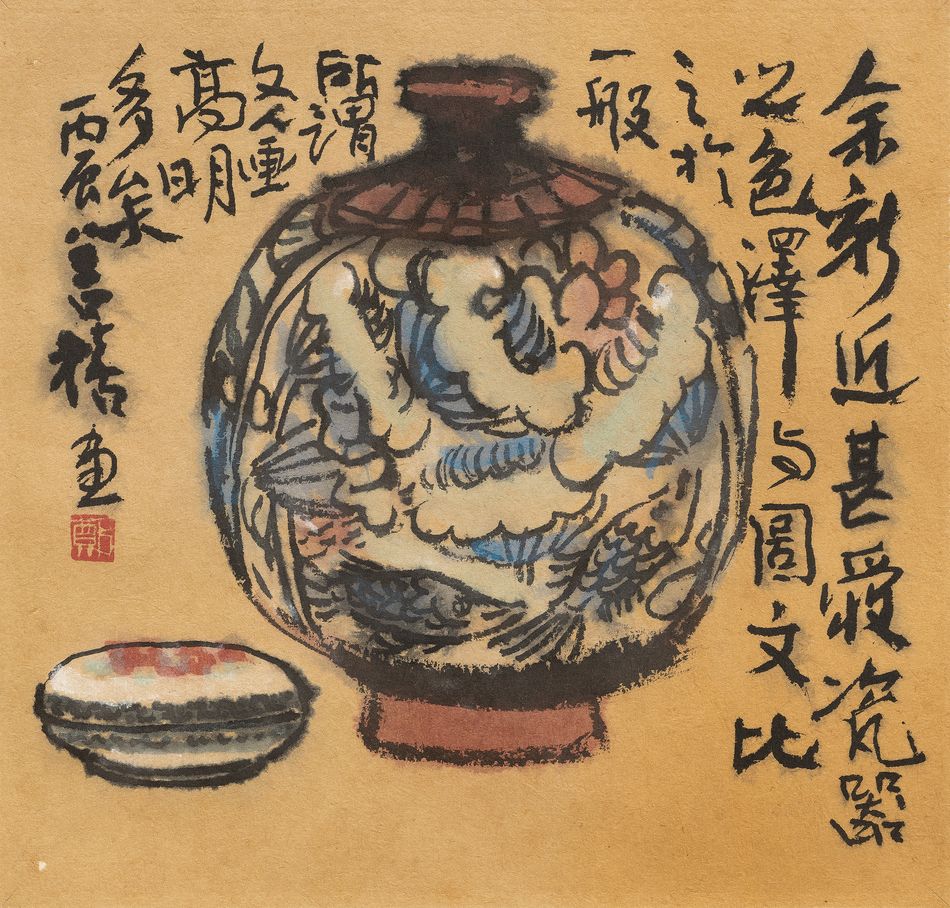 (二)余新近甚愛收瓷器皿,色澤與圖文比之於一般所謂文人畫高明多矣,丙辰善禧畫。