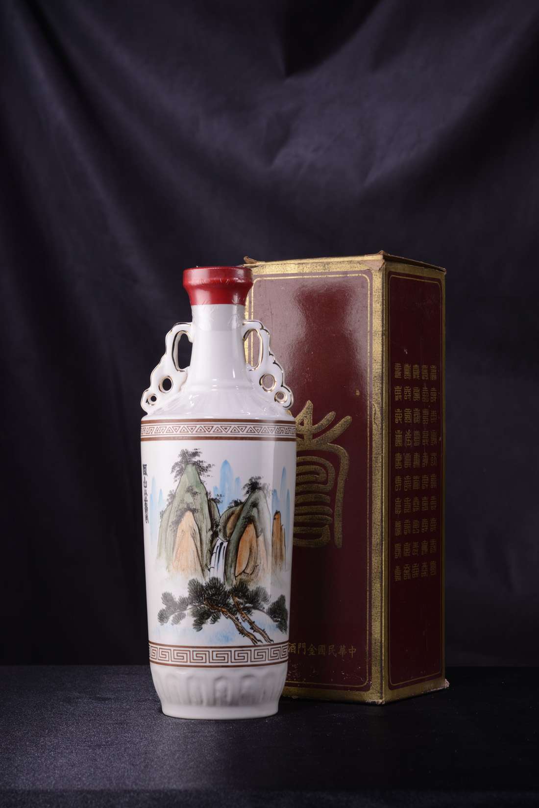 民國71年 壬戍手彩繪山水 蔣經國總統贈酒(河山並壽)