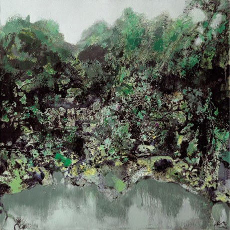 簽名畫背:《淡雪松居》洪凌作于2005年 120 x 120 cm