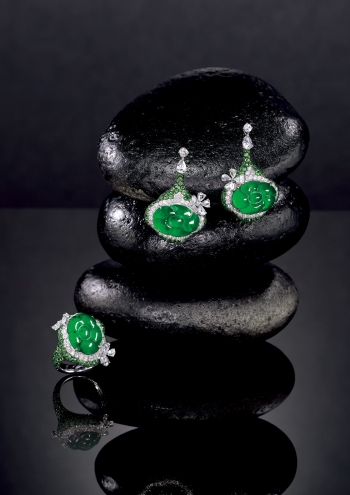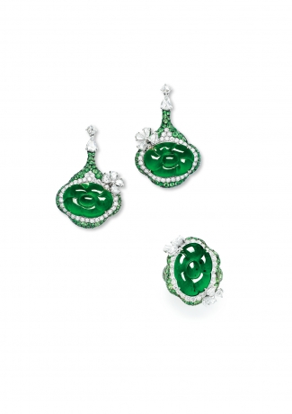 A SET OF JADEITE, TSAVORITE GARNET AND DIAMOND JEWELRY