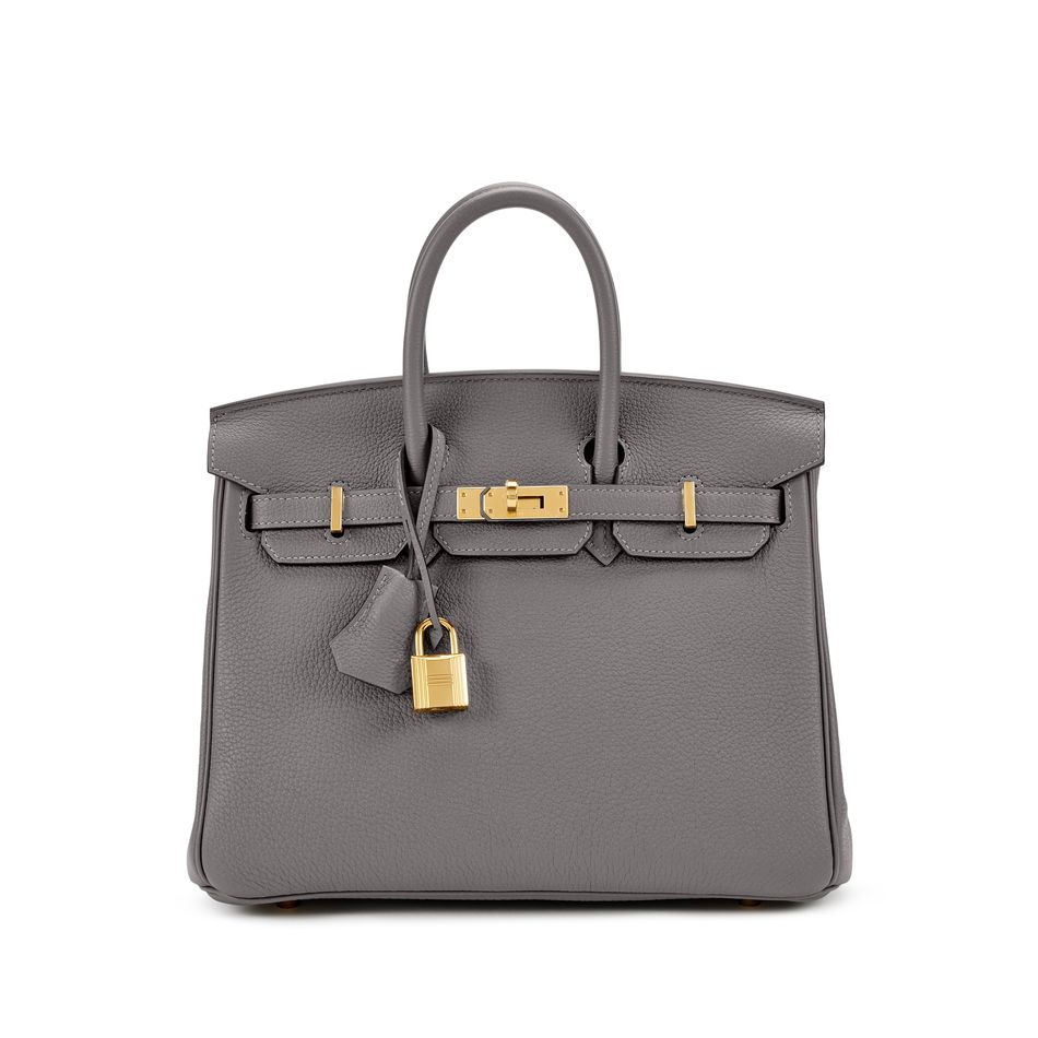 積雨雲灰色TOGO牛皮25公分柏金包附金色金屬配件