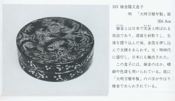 明萬曆暦鎗金龍紋盒「大明萬曆年製」款