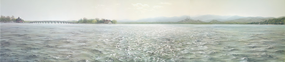 簽名畫背:頤和春色 Summer Palace in Spring 150 x 222 cm 布面丙烯 Acrylic on Canvas 曹敬平 Cao Jing ping 2007(三件)