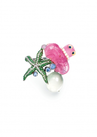 緬甸天然翡翠蛋面, 碧璽, 藍寶石, 沙弗來石與鑽石戒指