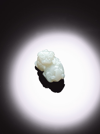 清乾隆 白玉銜芝瑞獸