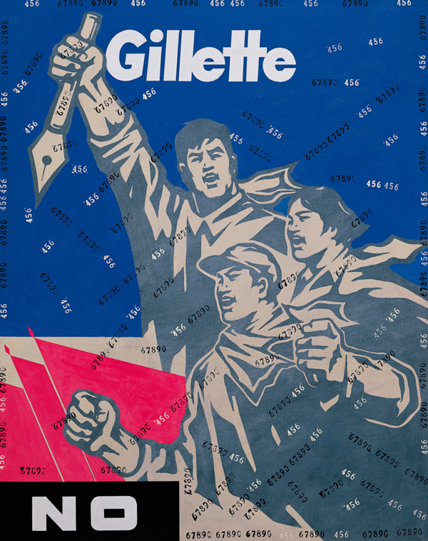 在「大批判」系列裡,王廣義引用了一種已經失效的鬥爭姿勢來重新闡釋消費文化現實,構成一種虛擬的、不真實的批判。世界名牌在這裡都改變了其本來的特徵、屬性,也改變了與現實的關係,而被消費文化浸染與政治扯上了。這些畫面常常引起人的矛盾情緒,面對物欲橫流的物質社會和商業化海報的強烈視覺衝擊,政治成為藝術家最先想到的調侃物件,在彼此消解的結構下表達了藝術家鮮明的個人態度。