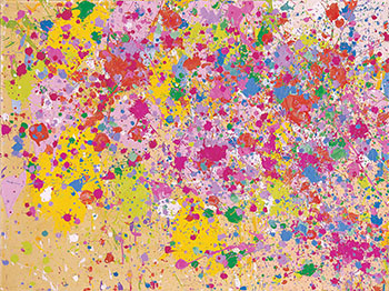 《甜蜜銀河》作於1969年,完美呈現了藝術家這一時期的探索與嘗試。畫面被看似任意潑灑的油彩覆蓋,帶有濃重的波洛克風格影響。大面積的明黃,玫紅,以及間雜其中跳躍的洋紅,青翠的綠色無不透露著藝術家率性灑脫的性格。