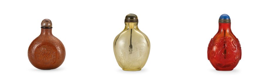 雪霏地套红料「万寿无疆」「三多九如」鼻烟壶 《乾隆年制》仿款